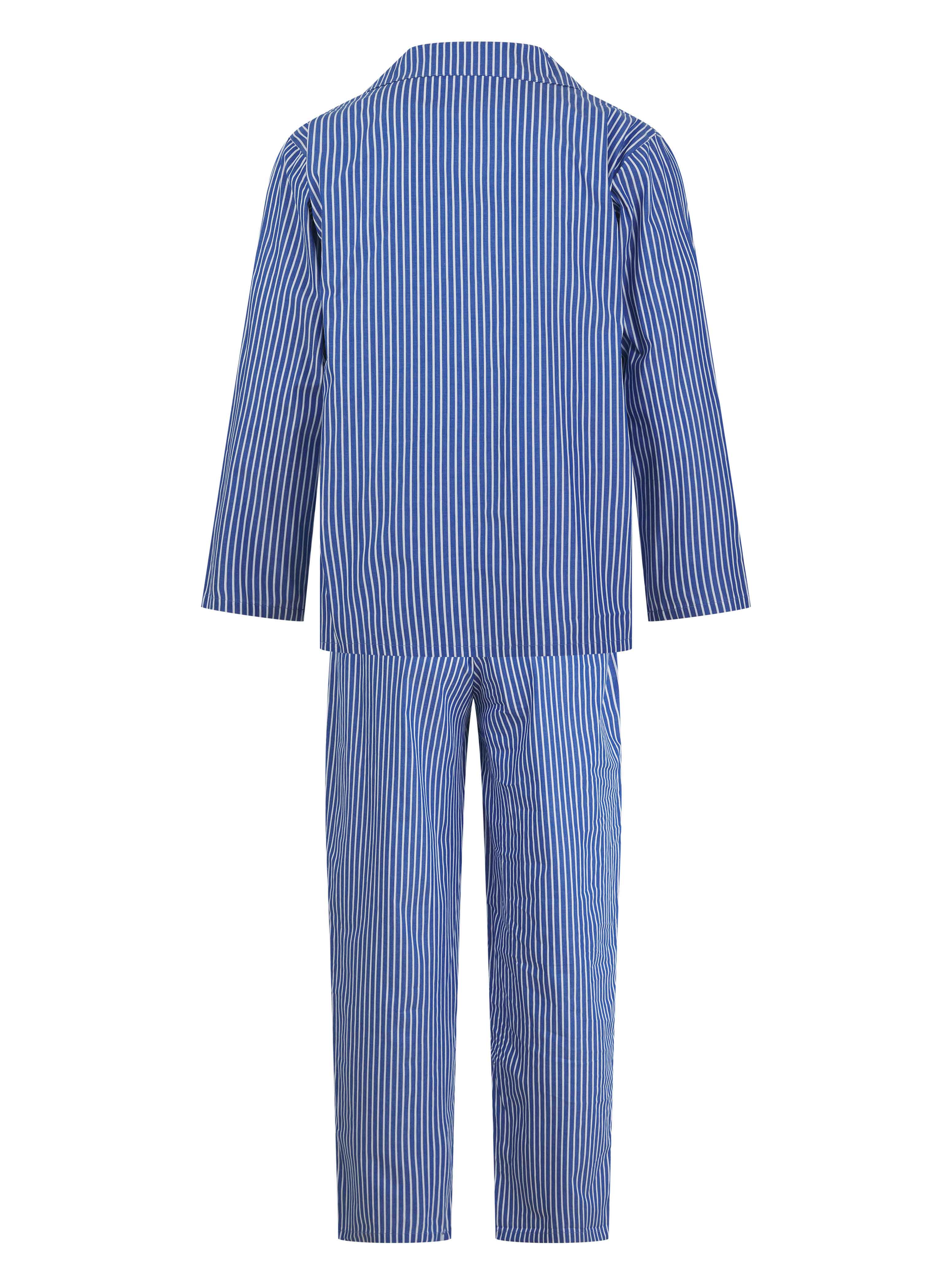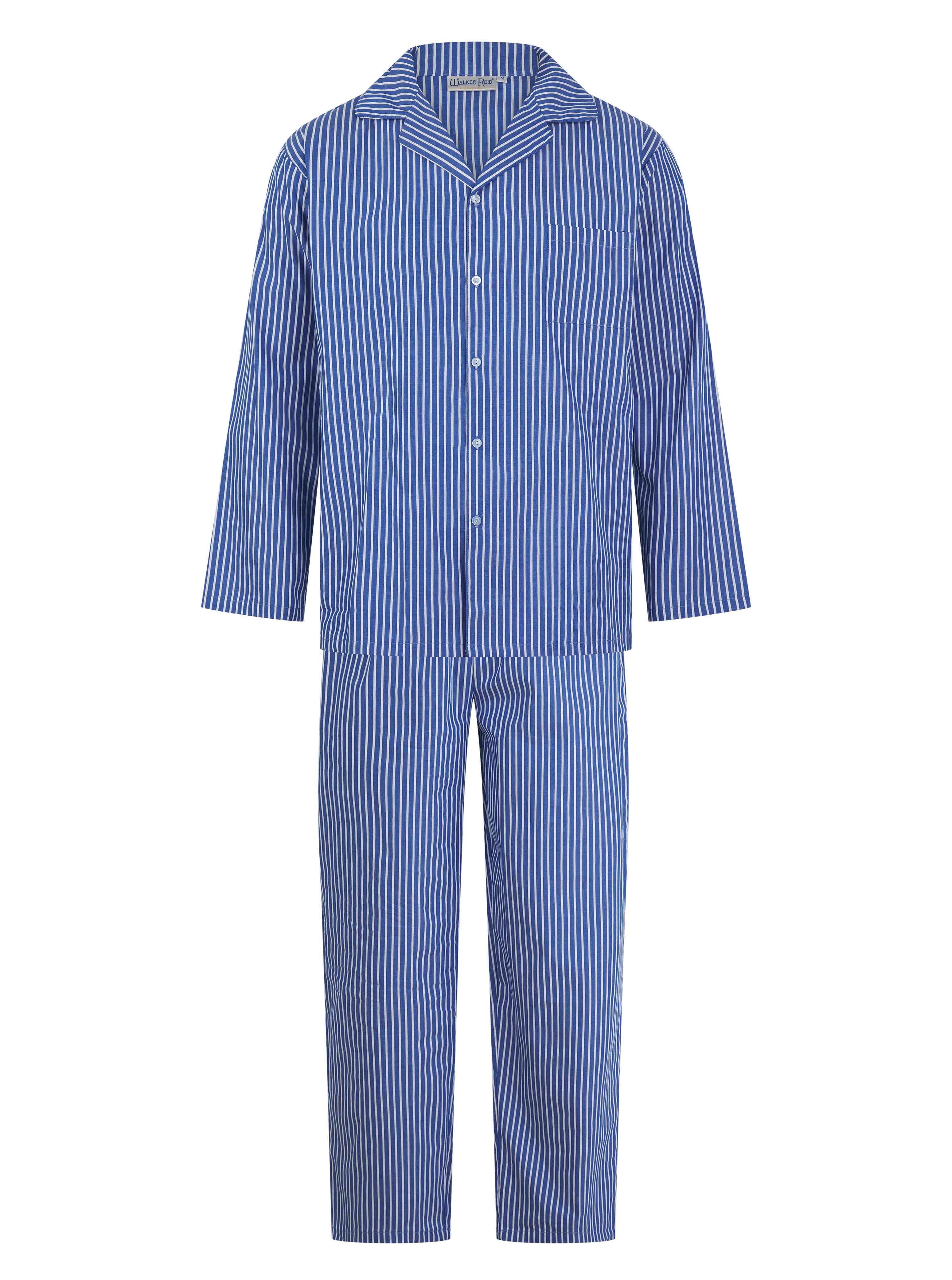 This classic style pyjama is made from 100% woven cotton and is designed in a classic stripe print. The tailored top features a classic button-through design with five buttons, a left-side breast pocket, and long sleeves for timeless style. The coordinating long trouser offers a comfortable fly opening and elasticated waist for ease of wear. Can be worn with our matching wrap, WR1817.