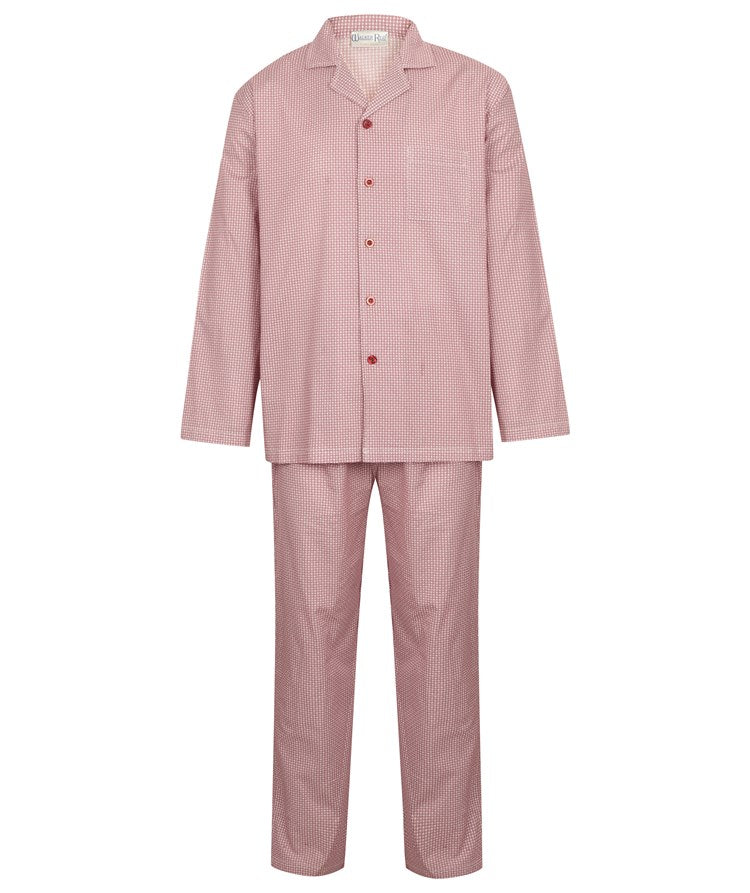 A lightweight, long sleeve tailored style pyjama set designed with a five button front for ease with dressing. Made in 100% cotton and sold as a set with our co-ordinating woven trouser with fly opening. Ideal pyjama set for winter.